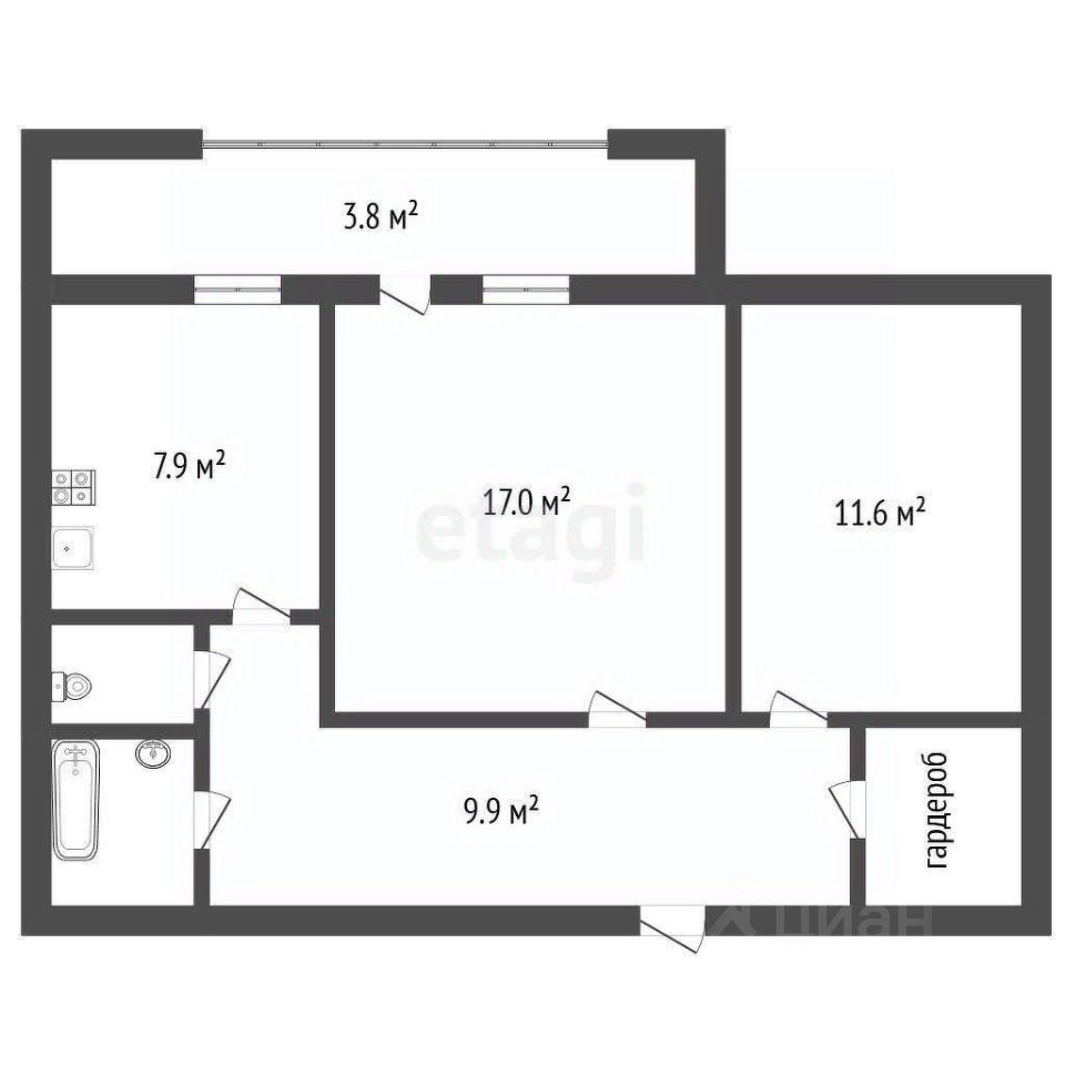 Ликвидная двухкомнатная квартира с удачной планировкой и большой лоджией.