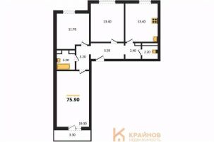 Квартира: 3 к 75,90 кв.м., 13 этаж в комплексе Озерки, 5 очередь, корп.38, сдача: 1кв. , этажей: 17, адрес Воронеж г., Ильюшина ул., , Застройщик: ВЫБОР.