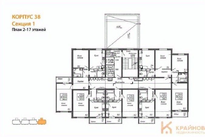 Квартира: 2 к 65,50 кв.м., 16 этаж в комплексе Озерки, 5 очередь, корп.38, сдача: 1кв. , этажей: 17, адрес Воронеж г., Ильюшина ул., , Застройщик: ВЫБОР.