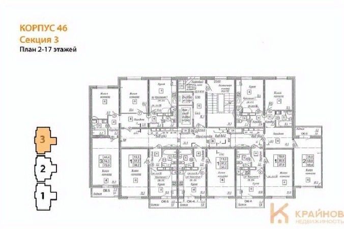 Квартира: 2 к 65,40 кв.м., 17 этаж в комплексе Озерки, 4 очередь, корп.46, сдача: 4кв. , этажей: 17, адрес Воронеж г., Шидловского ул., д. 22, Застройщик: ВЫБОР.