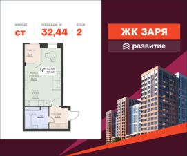 В продаже квартира площадью 32.44 кв. м с черновой отделкой. Квартира расположена на 2 этаже 14 этажного дома, в новом жилом комплексе "Заря" от федерального застройщика "Развитие".