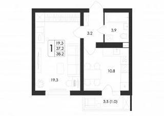 Продаётся 1-комнатная квартира в строящемся доме (Позиция 38), срок сдачи: III-кв. 2026, общей площадью 38.2 кв.м., на 14 этаже. Расположение, транспортная доступность