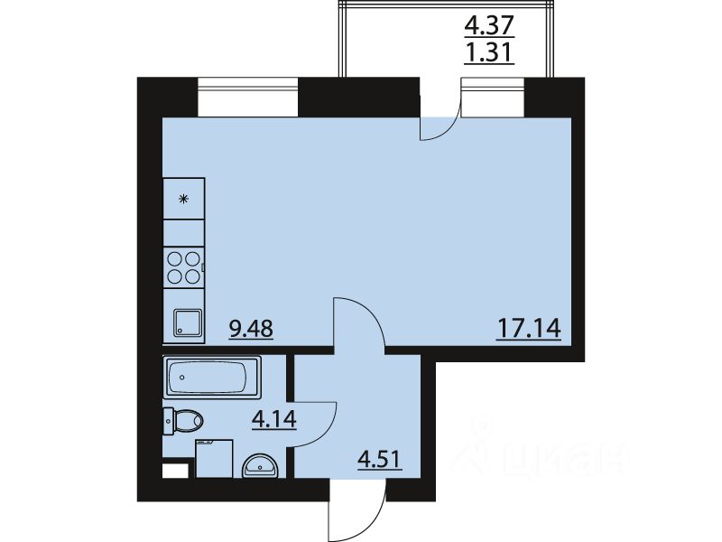 Жилая площадь17,1 м²