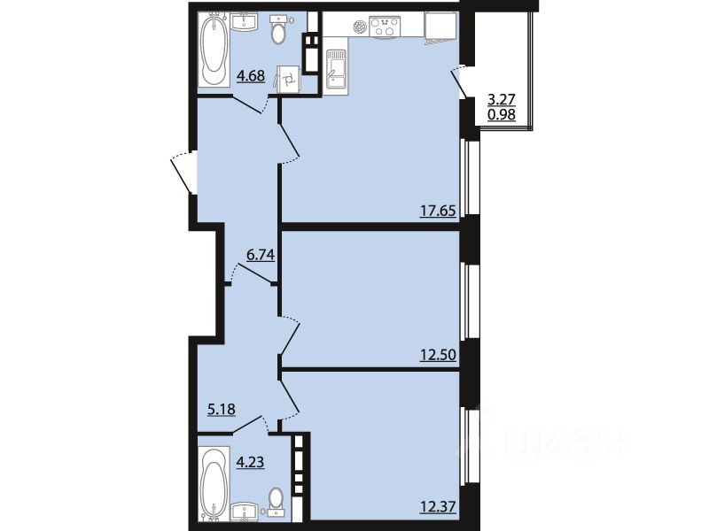 Общая площадь64,33 м²