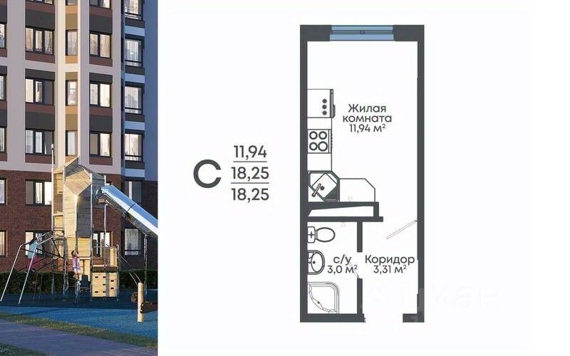 Продаётся студия в строящемся доме (Блок-секция 1), срок сдачи: IV-кв. 2025, общей площадью 18.25 кв.м., на 11 этаже. ЖК "8 Элемент" - это 3 отдельно стоящих 15-этажных домов (дома из железобетонных блоков) с современными, уютными, просторными квартирами в микрорайоне с развитой инфраструктурой