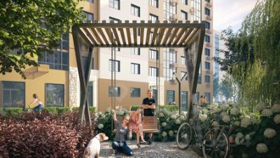 - Ландшафтное озеленение, стильные входные группы, современные игровые комплексы в экостиле, велопарковки на территории