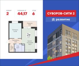 В жилом комплексе, расположенном в 4 километрах от исторического центра Воронежа, продается 2-комнатная квартира площадью 44.17 кв. м с черновой отделкой. Квартира расположена на 6 этаже корпуса 10908586 (ЖК "Суворов Сити 2" (1-й этап, ПОЗИ жилого комплекса комфорт-класса "Суворов Сити II" от федерального застройщика ГК "Развитие".