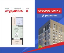 В жилом комплексе, расположенном в 4 километрах от исторического центра Воронежа, продается студия площадью 21.06 кв. м с черновой отделкой. Квартира расположена на 8 этаже корпуса 10908586 (ЖК "Суворов Сити 2" (1-й этап, ПОЗИ жилого комплекса комфорт-класса "Суворов Сити II" от федерального застройщика ГК "Развитие".
