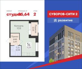 В жилом комплексе, расположенном в 4 километрах от исторического центра Воронежа, продается студия площадью 25.64 кв. м с черновой отделкой. Квартира расположена на 2 этаже корпуса 10908586 (ЖК "Суворов Сити 2" (1-й этап, ПОЗИ жилого комплекса комфорт-класса "Суворов Сити II" от федерального застройщика ГК "Развитие".