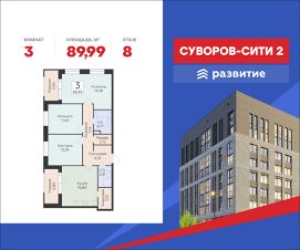 В жилом комплексе, расположенном в 4 километрах от исторического центра Воронежа, продается 3-комнатная квартира площадью 89.99 кв. м с черновой отделкой. Квартира расположена на 8 этаже корпуса 10908586 (ЖК "Суворов Сити 2" (1-й этап, ПОЗИ жилого комплекса комфорт-класса "Суворов Сити II" от федерального застройщика ГК "Развитие".