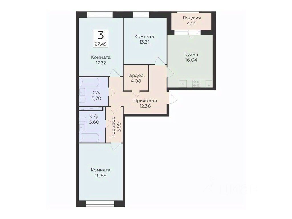 97,45 м²