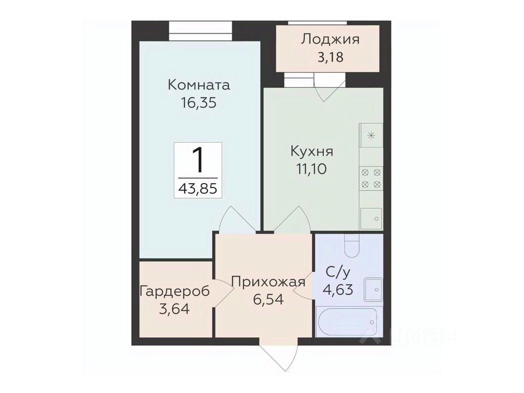 43,85 м²