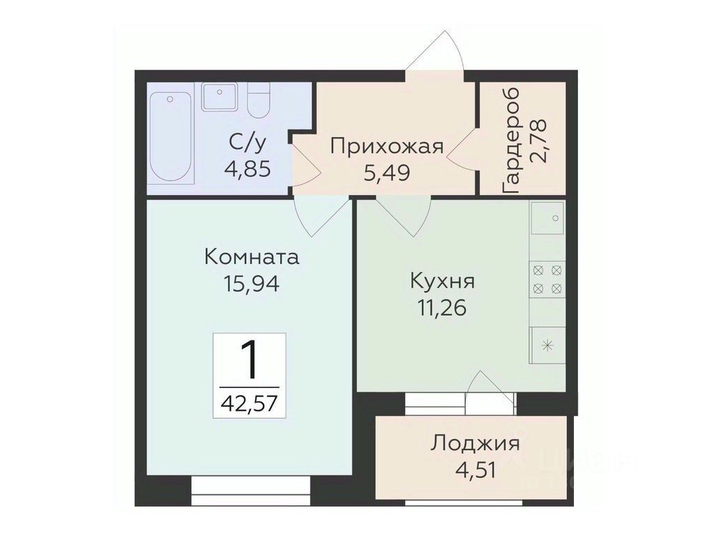 42,57 м²