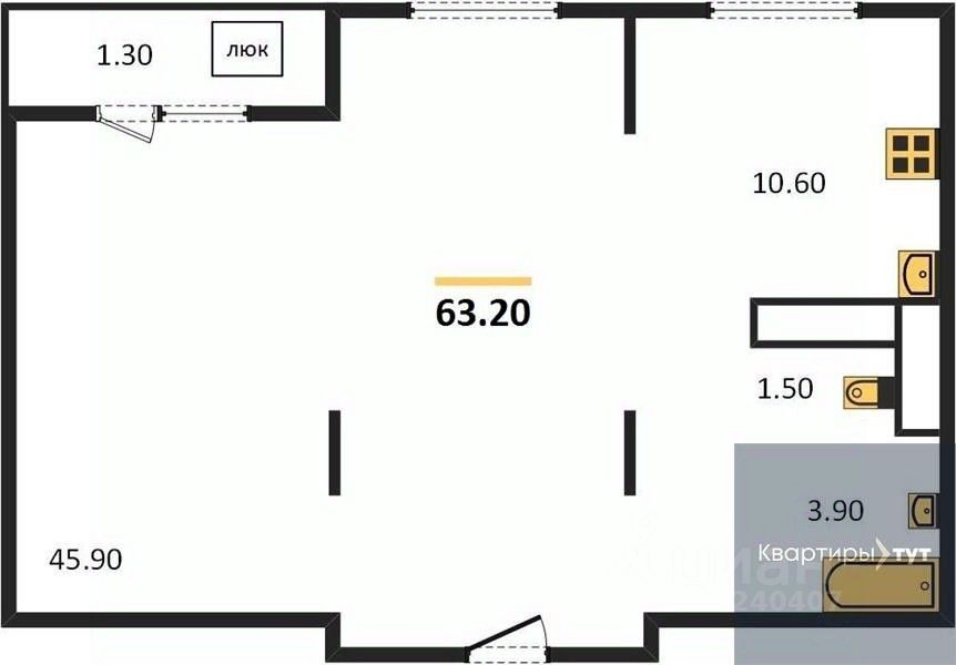 Квартира: 1 к 63,20 кв.м., 20 этаж в комплексе Яблоневые сады, 1 очередь, корп.13.3, сдача: 4кв. , этажей: 21, адрес Воронеж г., Загоровского ул., д. 7 корп. 2, Застройщик: ВЫБОР.