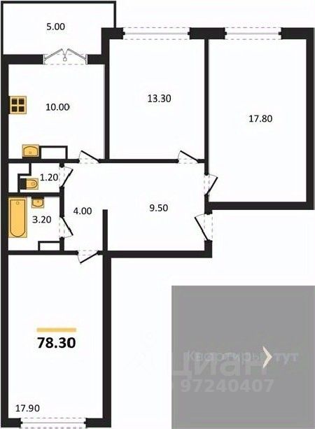 Квартира: 3 к 78,30 кв.м., 16 этаж в комплексе Черемушки, 3 очередь, корп.8, сдача: 1кв. , этажей: 17, адрес Отрадное п., 70 лет Победы бул., д. 5, Застройщик: ДСК.