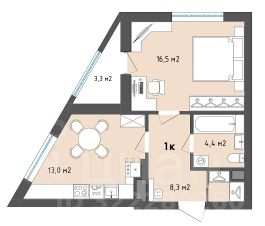 Продается уютная однокомнатная квартира в современном жилом комплексе на бульваре Содружества, 1 в Воронеже. Общая площадь квартиры составляет 43.9 кв. м, из которых 16.5 кв. м — жилая площадь и 13 кв. м — просторная кухня. Квартира находится на 2 этаже 13-этажного монолитного дома.