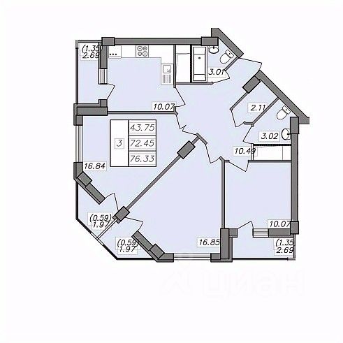 Продаётся 3-комнатная квартира в сданном доме (Волгоградская, 45 (Секция 4)), срок сдачи: IV-кв. 2023, общей площадью 76.33 кв.м., на 13 этаже. Новый жилой комплекс "Свой дом" от Специализированного застройщика ООО "Свой дом" расположен по адресу: г. Воронеж, по ул. Волгоградская.