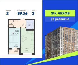 Продается квартира площадью 39.36 кв. м без отделки. Квартира находится на 2 этаже 20 этажного дома, в жилом комплексе "Чехов". Комплекс расположен по адресу - г. Воронеж, ул. Богдана Хмельницкого д. 45а.