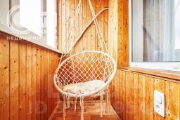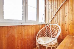 Комната наполнена воздухом, благодаря лоджии с отделкой, утепленной внутри и с атмосферными подвесными качелями для вкусных утренних чаепитий и вечернего чтения любимой книги.