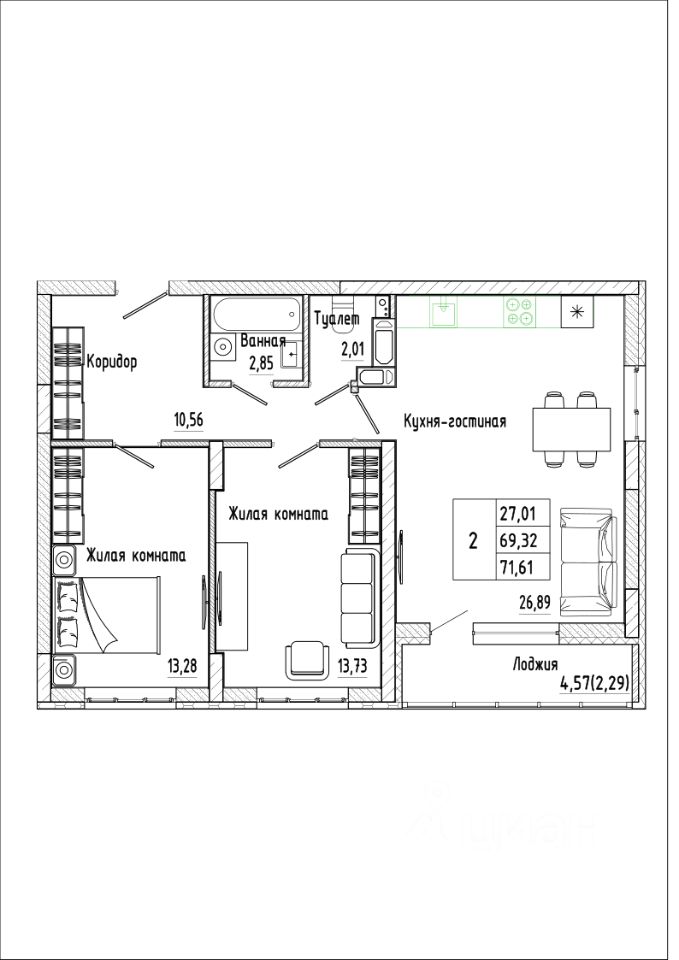 Продаётся 2-комнатная квартира в строящемся доме (Дом 2), срок сдачи: II-кв. 2029, общей площадью 71.61 кв.м., на 17 этаже. Жилой комплекс "Алые паруса" представляет собой 19-этажный жилой дом на улице Мопра, 16 вблизи парка "Алые паруса".