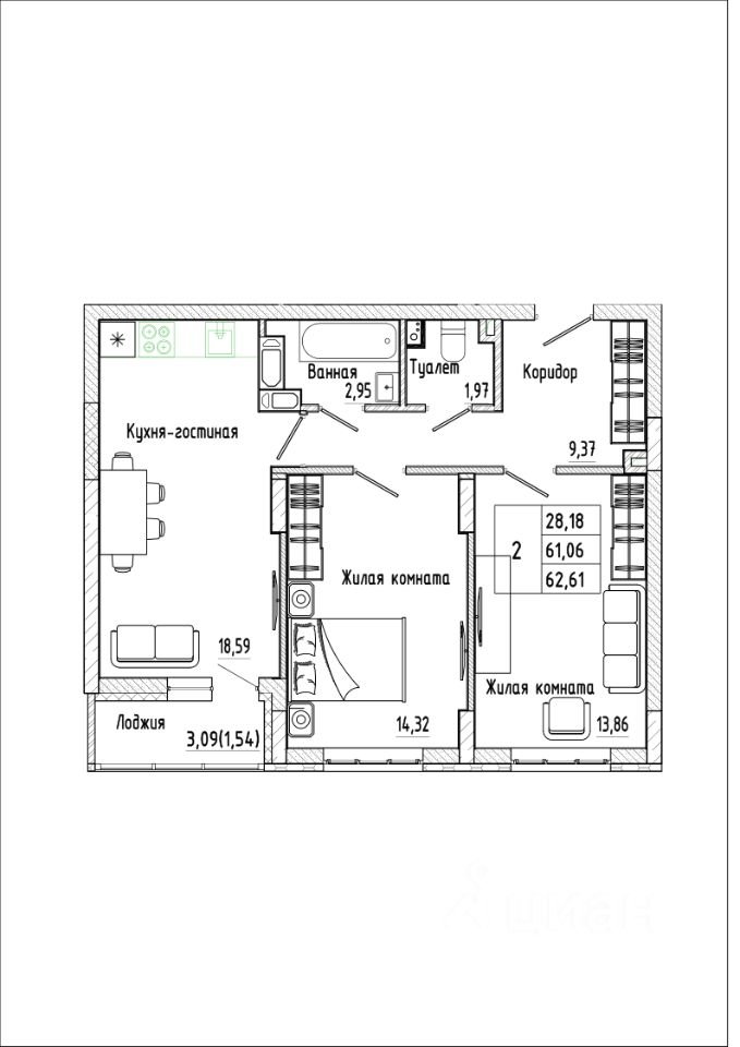 Продаётся 2-комнатная квартира в строящемся доме (Дом 2), срок сдачи: II-кв. 2029, общей площадью 62.61 кв.м., на 14 этаже. Жилой комплекс "Алые паруса" представляет собой 19-этажный жилой дом на улице Мопра, 16 вблизи парка "Алые паруса".