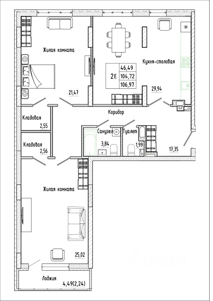 Продаётся 2-комнатная квартира в строящемся доме (Дом 2), срок сдачи: II-кв. 2029, общей площадью 106.97 кв.м., на 16 этаже. Жилой комплекс "Алые паруса" представляет собой 19-этажный жилой дом на улице Мопра, 16 вблизи парка "Алые паруса".