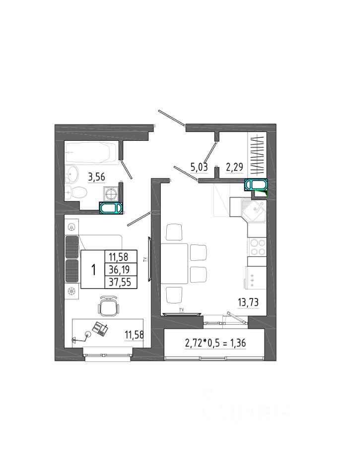 Продаётся 1-комнатная квартира в строящемся доме (Дом 2), срок сдачи: II-кв. 2029, общей площадью 37.55 кв.м., на 16 этаже. Жилой комплекс "Алые паруса" представляет собой 19-этажный жилой дом на улице Мопра, 16 вблизи парка "Алые паруса".