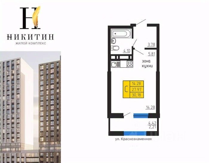 Продаётся студия в строящемся доме (Дом 2), срок сдачи: IV-кв. 2027, общей площадью 30.18 кв.м., на 11 этаже. Жилой комплекс "Никитин" расположен в Ленинском районе города Воронеж. Он представляет собой современный жилой комплекс, который включает в себя несколько многоэтажных домов, обустроенных территорию и парковочные места. ЖК "Никитин" предлагает различные типы квартир, от однокомнатных до многокомнатных, с различной планировкой и площадью. В квартирах учтены современные требования к комфорту и функциональности, а также использованы качественные материалы и технологии при их строительстве. Кроме того, в составе жилого комплекса "Никитин" также предусмотрены различные инфраструктурные объекты, такие как детские площадки, магазины, спортивные и развлекательные зоны. ЖК "Никитин" находится в удобном месте, которое обеспечивает доступность к основным транспортным магистралям и другим элементам городской инфраструктуры. ЖК "Никитин" обеспечивает своих жителей уютной и благоустроенной территорией. Здесь нет машин, что создает спокойную и безопасную атмосферу. Территория ограждена забором, что обеспечивает приватность и безопасность жителей. Территория комплекса разделена на 3 основные зоны: лаунж, детская и спортивная. Лаунж зона порадует жителей альпийскими горками, беседками и устройством для зарядки телефонов. В детской зоне созданы идеальные условия для активных игр и развлечений, а в спортивной зоне можно заниматься спортом на свежем воздухе. Также предусмотрена вспомогательная зона для выгула собак. Все эти элементы создают идеальное пространство для жизни и отдыха. Жилой комплекс "Никитин" предоставляет своим жильцам удобную и современную подземную парковку. В ней находится пост с мойками самообслуживания с пылесосом и возможностью подкачки шин. Для владельцев электрокаров предусмотрен пост зарядки, а также отдельное место для зарядки электроскутеров. Парковка обеспечена системой видеонаблюдения, которая обеспечивает безопасность автомобилей и жильцов. Въезд на паркинг осуществляется по системе считывания номеров, что упрощает процесс и делает его быстрым.