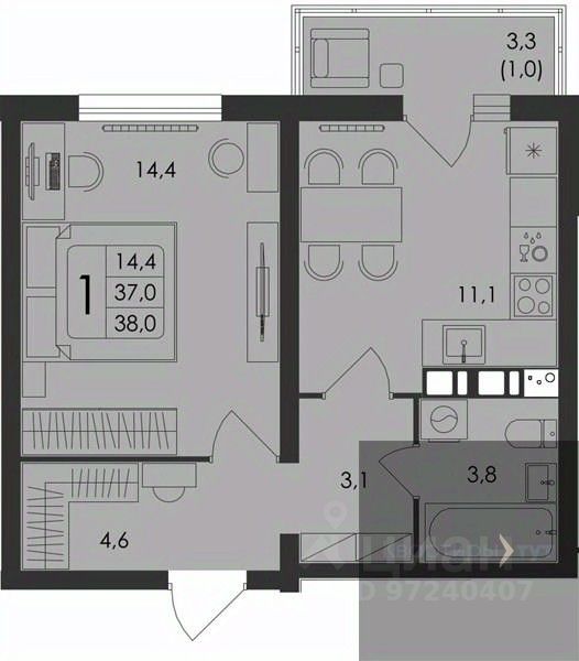 Квартира: 1 к 38,00 кв.м., 5 этаж в комплексе Счастье, 2 очередь, корп.18, сдача: 4кв. , этажей: 7, адрес Ямное село, Проселочная ул., д. 2 к 5, Застройщик: ВЫБОР.