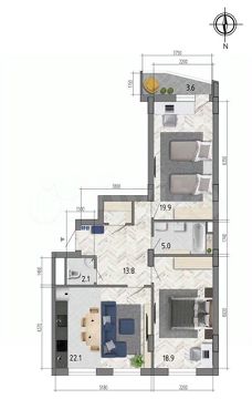 Площадь квартир 32,5 - 105 м2. Предлагаются различные варианты отделки от предчистовой ( квартира подготовлена для дальнейших отделочных работ) до чистовой комфорт ( обои под покраску)