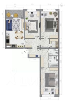 Площадь квартир 32,5 - 105 м2. Предлагаются различные варианты отделки от предчистовой ( квартира подготовлена для дальнейших отделочных работ) до чистовой комфорт ( обои под покраску)