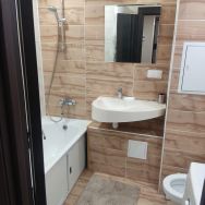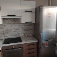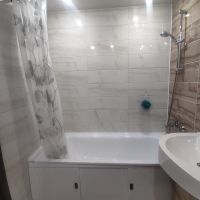В квартире выполнен современный ремонт: в прихожей и кухне выложен керамогранит,полностью отделан санузел и коммуникации в нем, в комнатах и холле установлено дополнительное освещение, установлен кондиционер, поставлены новые межкомнатные двери,на полу ламинат,в коридоре в нише шкаф-купе. Просторная кухня площадью 9 кв. м. В квартире совмещенный санузел и одна лоджия, выходящая во двор.