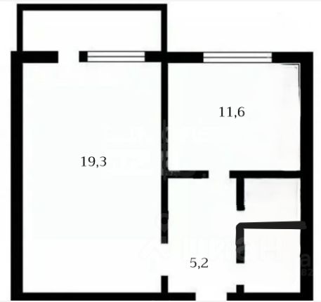 - кухня 11.6 кв.м. + просторная комната 19.3 кв.м.;
