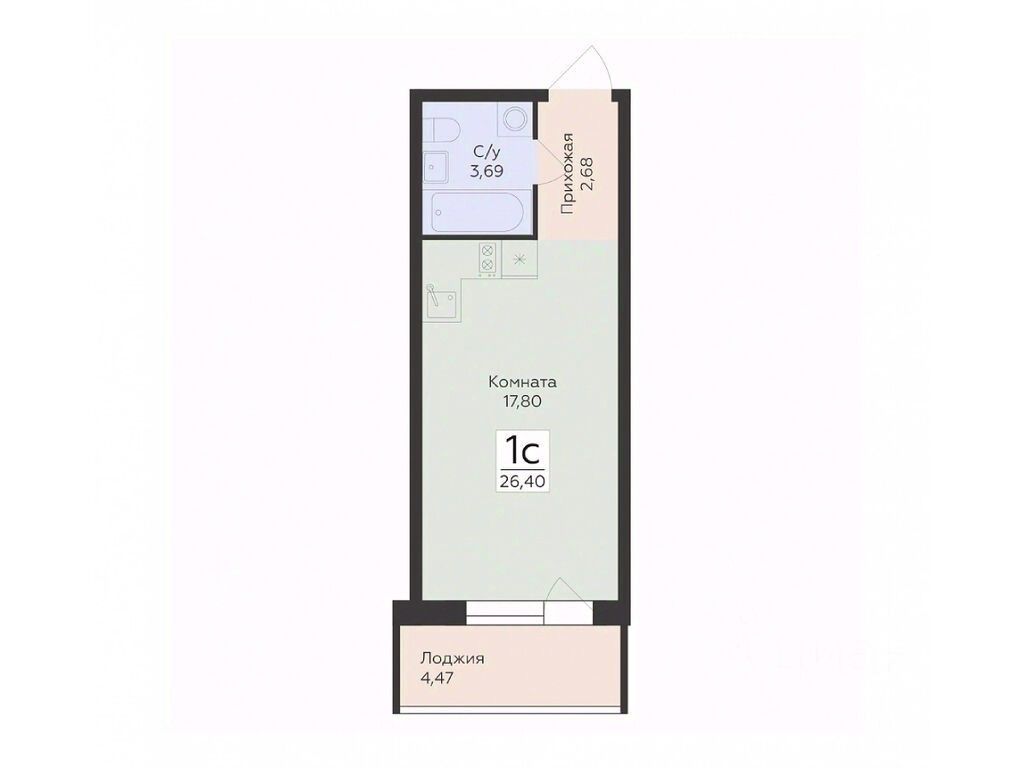 В продаже квартира площадью 26.40 кв. м с черновой отделкой. Квартира расположена на 2 этаже 16 этажного дома, в жилом комплексе комфорт-класса FLORA ("Флора").