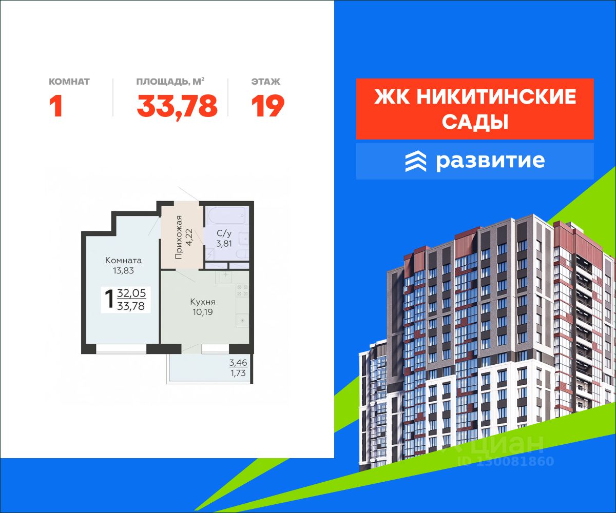 В продаже квартира площадью 33.78 кв. м с отделкой. Квартира расположена на 19 этаже 20 этажного дома, в жилом комплексе комфорт-класса "Никитинские сады".