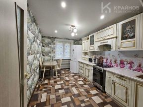 В квартире сделан современный, новый ремонт, акцентные обои, на полу ламинатная доска, на кухне хороший износостойкий линолеум, в коридоре, туалете, в ванной плитка. Установлены пластиковые стеклопакеты, натяжные потолки