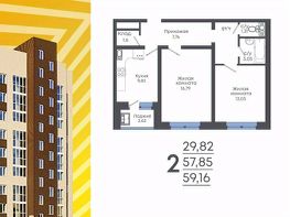 Продаётся 2-комнатная квартира в строящемся доме (Раздольная, 4 (Дом 3 (поз. 2))), срок сдачи: II-кв. 2027, общей площадью 59.16 кв.м., на 9 этаже. Расположение, транспортная доступность
