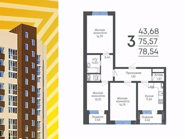 Продаётся 3-комнатная квартира в строящемся доме (Раздольная, 4 (Дом 3 (поз. 2))), срок сдачи: II-кв. 2027, общей площадью 78.54 кв.м., на 10 этаже. Расположение, транспортная доступность