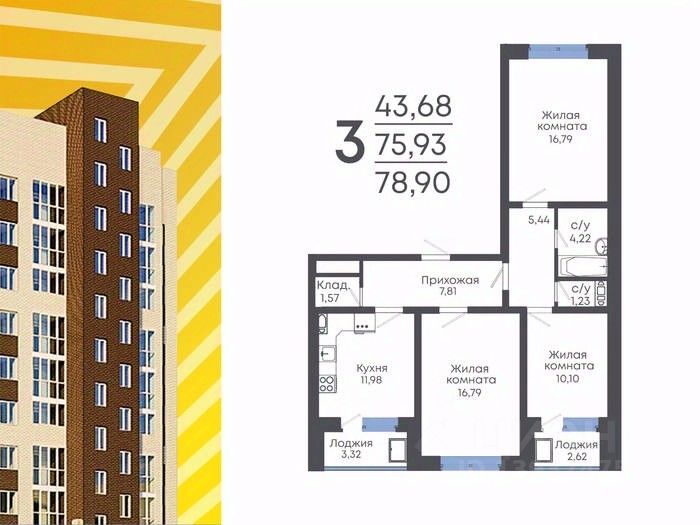 Продаётся 3-комнатная квартира в строящемся доме (Раздольная, 4 (Дом 3 (поз. 2))), срок сдачи: II-кв. 2027, общей площадью 78.9 кв.м., на 1 этаже. Расположение, транспортная доступность