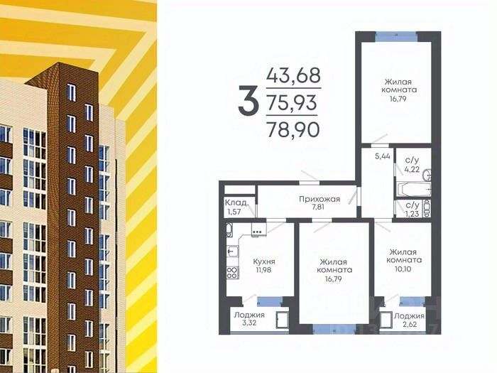 Продаётся 3-комнатная квартира в строящемся доме (Раздольная, 4 (Дом 3 (поз. 2))), срок сдачи: II-кв. 2027, общей площадью 78.9 кв.м., на 8 этаже. Расположение, транспортная доступность