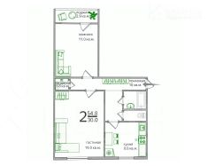 • гостиная 19 кв.м., спальня 11 кв.м. с выходом на лоджию 2,85 кв.м., кухня 8 кв.м., гардеробная 1.8 кв.м., прихожая 10 кв.м., санузел - ванная 2,7 кв.м., туалет 1 кв.м.