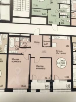 Кухня гостинная 18м2 с возможностью увеличения за счет лоджии с витражами 3,5м. Комната 12,14м2 с панорамной лоджией 3,5м2+комната 18,68м2. 2 с/у: 4,95м2, 2,47м2. Гардеробная 2,37м2. Холл 11,77 м2.