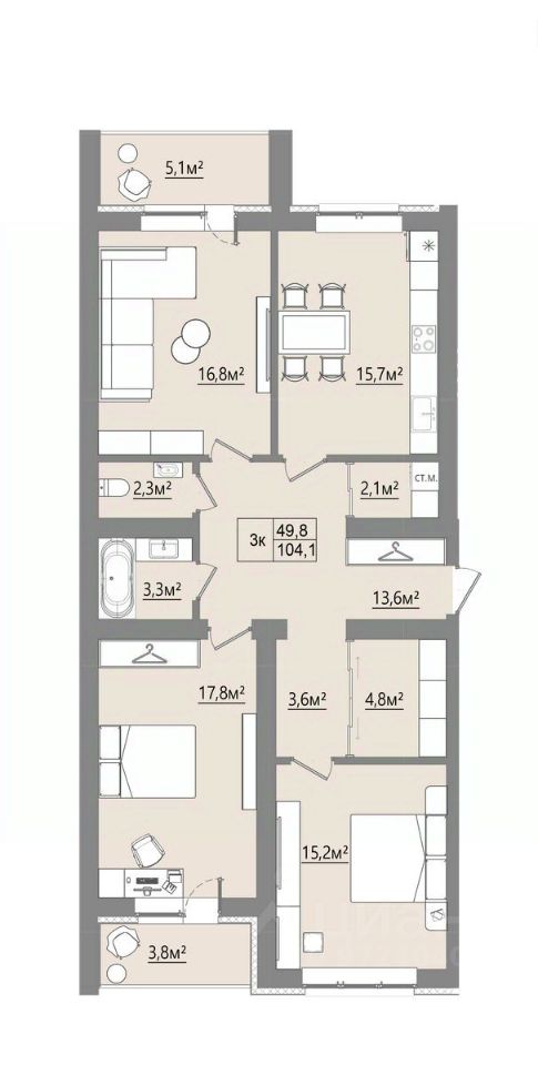Продаётся 3-комнатная квартира в строящемся доме (Дом 5), срок сдачи: IV-кв. 2025, общей площадью 99.65 кв.м., на 1 этаже. Новый жилой комплекс "Микрорайон Благодатный" от Специализированного застройщика "ВИТ-СТРОЙ" расположен по адресу: Воронежская обл., с. Ямное, по ул. Графа Орлова.