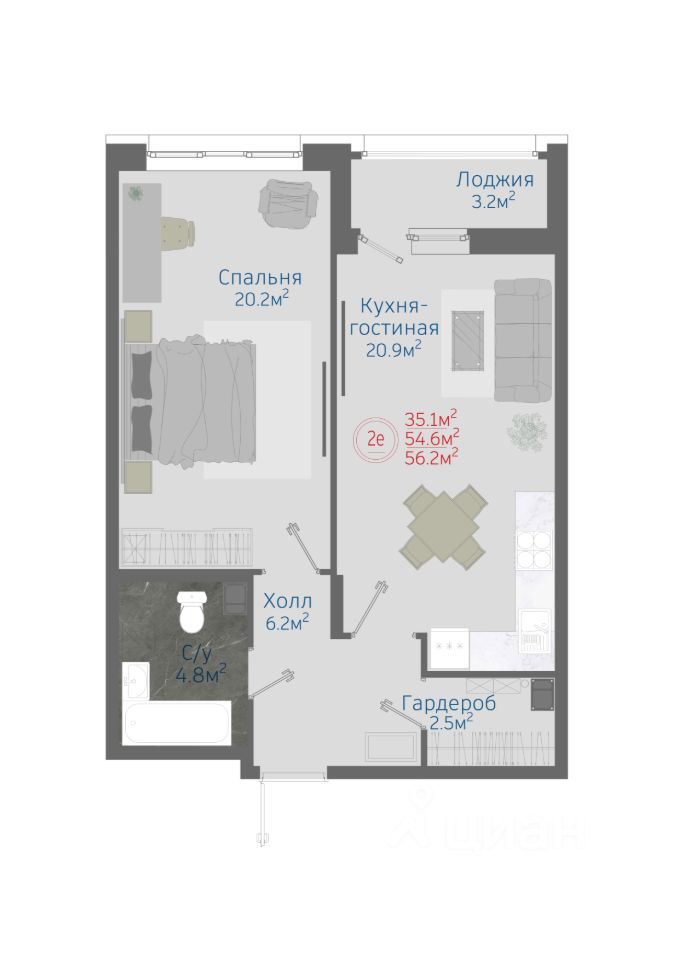 Общая площадь56,2 м²