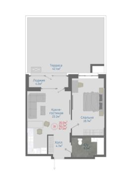 Просторная кухня-гостиная, Удобная планировка, Прихожая с отдельной гардеробной комнатой, Санузел удобной прямоугольной формы, Выход на большого размера лоджию из кухни