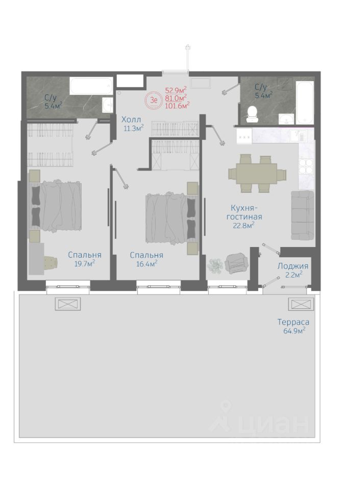 Современная трехкомнатная квартира с большой кухней-гостинной. Больная кухня-гостиная, Просторный холл, Выход на балкон из кухни Великолепная планировка с функциональным большим холлом. Гардеробная комната предполагают систему хранения, которая поможет избавиться от лишних шкафов. Комфортные средних размеров спальни. Удобное расположение двух санузлов. Выход на балкон комфортно располагается из большой кухни-гостиной., ПСК 4.6%19.9%. -------------------------------------------- Выгодные варианты покупки от Застройщика: 1. Семейная ипотека 4,6% на весь срок кредитования (без удорожания). 2. ИТ ипотека 4,6% на весь срок кредитования (без удорожания) 3. Рассрочка 0% (до сдачи дома) 4. Базовая ипотека для всех от 13,4% (до сдачи дома) -------------------------------------------- Микрорайон комфорт-класса с полной инфраструктурой открывает "южные ворота" города, формируя новый образ. "Матрешка", оправдывая своё название, спроектирована по принципу "город в городе" — все необходимые и привычные удобства — развлекательные, спортивные, образовательные центры находятся в пешей доступности. Микрорайон расположен вблизи кольцевой развязки рядом с Леруа Мерлен в Отрадном, что позволяет быстро добираться до основных точек города, а в центр — за 20 минут Школа на 825 мест Детский сад на 450 мест Площадки для выгула собак Внутренний двор без машин Бесплатный спортзал в каждом доме Игровые комнаты для детей и взрослых Заправки для электромобилей Велодорожки Территория микрорайона Разнообразные планировки и отделка Квартиры с террасами На территории микрорайона располагается большой многофункциональный спортивно-развлекательный комплекс площадью 50 тыс кв.м., оснащённый новейшим оборудованием и спортивными залами для тренировок, фитнеса, спорта и активного отдыха. Также вы можете остановиться в гостинице со SPA-зоной