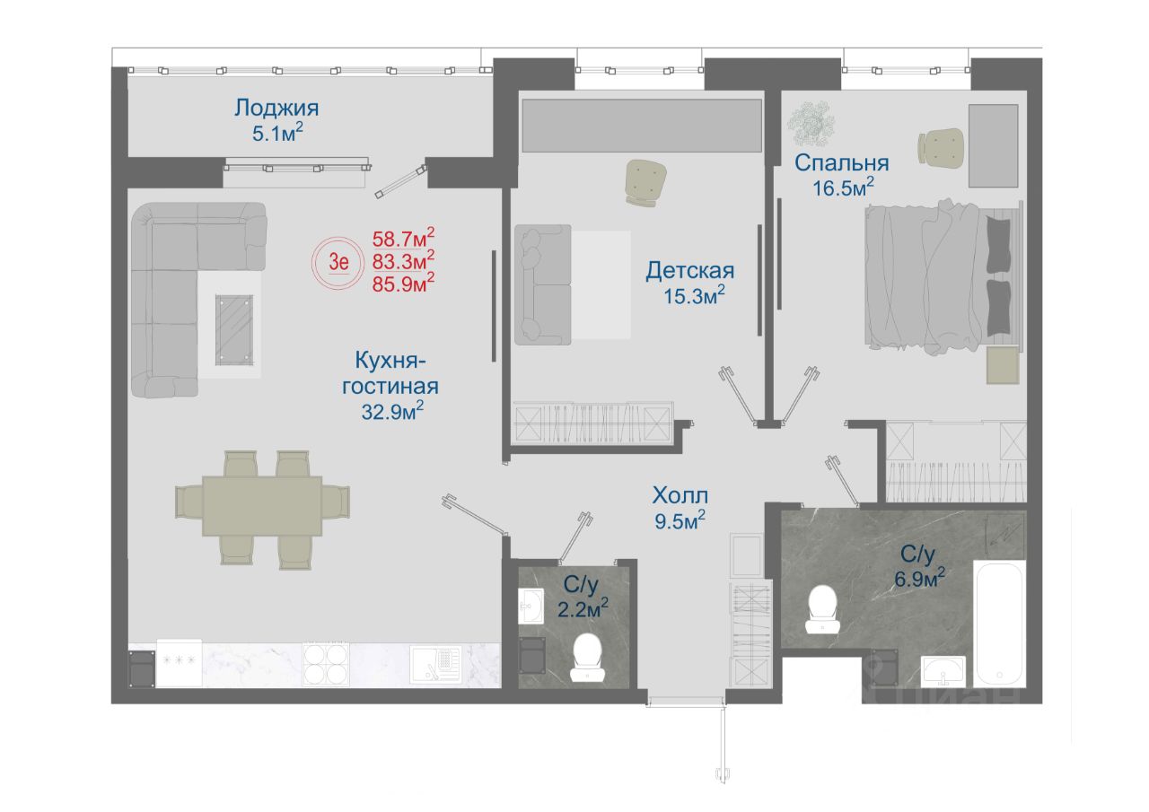 Современная трехкомнатная квартира с просторной кухней-гостинной. Просторная кухня-гостиная, Удобная прихожая, Выход на большого размера лоджию из кухни Функциональная планировка, Удобные средних размеров спальни с нишами для шкафа, двумя санузлами. Выход на большого размера лоджию комфортно располагается из просторной кухни-гостиной., ПСК 4.6%19.9%. -------------------------------------------- Выгодные варианты покупки от Застройщика: 1. Семейная ипотека 4,6% на весь срок кредитования (без удорожания). 2. ИТ ипотека 4,6% на весь срок кредитования (без удорожания) 3. Рассрочка 0% (до сдачи дома) 4. Базовая ипотека для всех от 13,4% (до сдачи дома) -------------------------------------------- Микрорайон комфорт-класса с полной инфраструктурой открывает "южные ворота" города, формируя новый образ. "Матрешка", оправдывая своё название, спроектирована по принципу "город в городе" — все необходимые и привычные удобства — развлекательные, спортивные, образовательные центры находятся в пешей доступности. Микрорайон расположен вблизи кольцевой развязки рядом с Леруа Мерлен в Отрадном, что позволяет быстро добираться до основных точек города, а в центр — за 20 минут Школа на 825 мест Детский сад на 450 мест Площадки для выгула собак Внутренний двор без машин Бесплатный спортзал в каждом доме Игровые комнаты для детей и взрослых Заправки для электромобилей Велодорожки Территория микрорайона Разнообразные планировки и отделка Квартиры с террасами На территории микрорайона располагается большой многофункциональный спортивно-развлекательный комплекс площадью 50 тыс кв.м., оснащённый новейшим оборудованием и спортивными залами для тренировок, фитнеса, спорта и активного отдыха. Также вы можете остановиться в гостинице со SPA-зоной