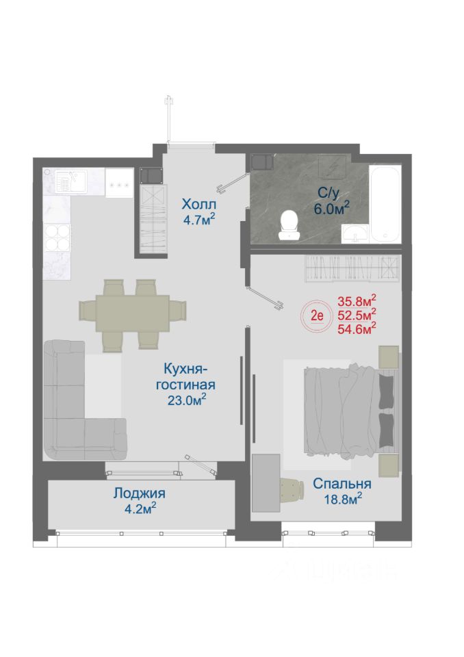 Квартира спроектирована с учётом современного стиля жизни и тенденций. Небольшой холл, переходящий в большую кухню-гостиную, которая позволит с комфортом принимать гостей и весело проводить время. Удобная большого размера спальня. Выход на лоджию из кухни. Увеличенные видовые окна., ПСК 4.6%19.9%.
