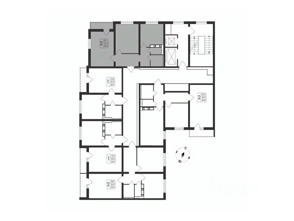 Общая площадь53,3 м²