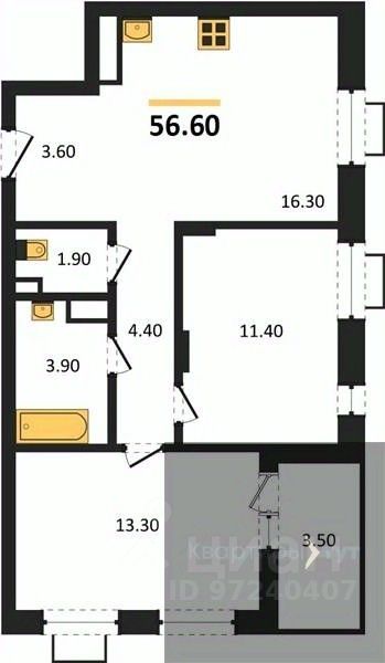 Квартира: 2 к 56,60 кв.м., 9 этаж в комплексе Ключи CLUB, 3 очередь, корп.3, сдача: 3кв. , этажей: 14, адрес Воронеж г., Остужева ул., д. 52/5, Застройщик: Новый код.